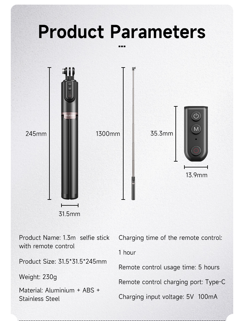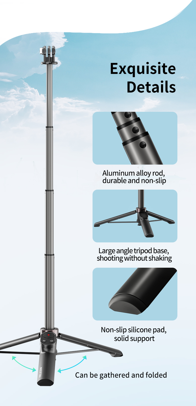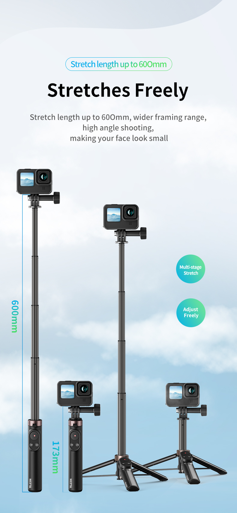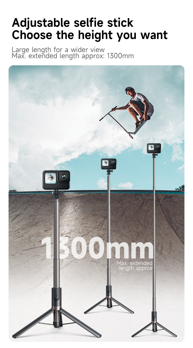 - Extended Reach: Achieve wider framing ranges and high-angle shooting with a stretch length ranging from 173mm to 1300mm.