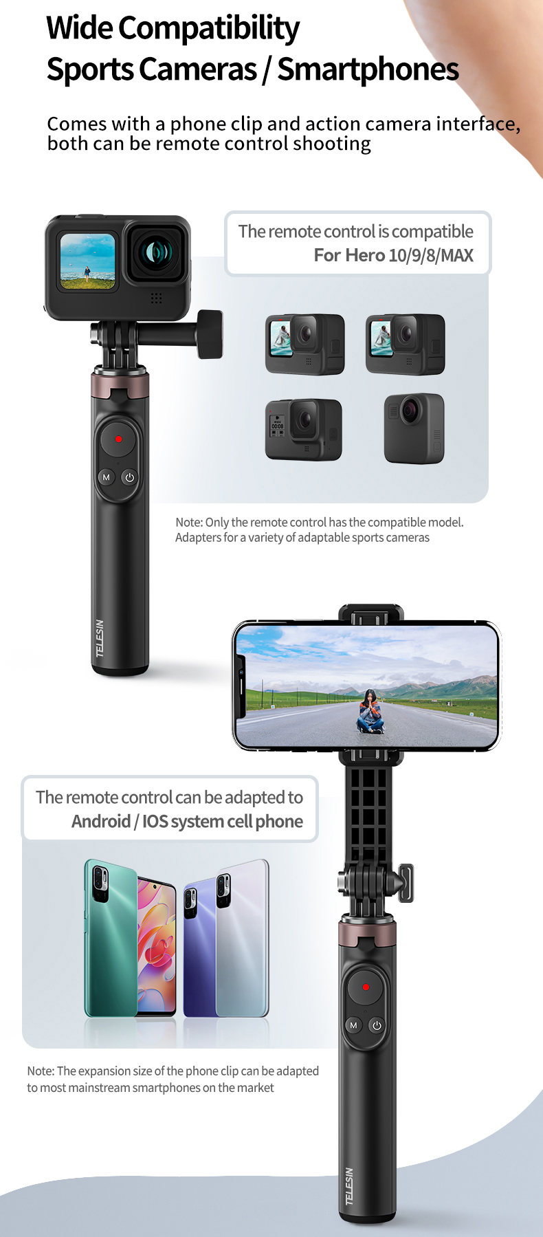 - Versatility in Framing: The selfie stick is equipped with both a phone clip and a GoPro interface, allowing you to switch between horizontal and vertical shots seamlessly.
