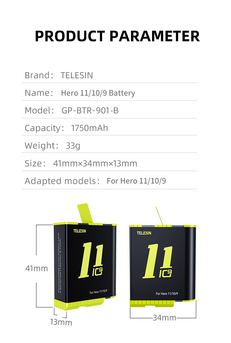 This Battery and Waterproof 3-Slot Charger Box with TF Card Reader for GoPro Hero 9 10 11 1750mAh is the perfect accessory for any GoPro user. It allows you to charge three batteries at the same time, read and write TF cards quickly, and store your batteries and TF cards safely in a waterproof case.
