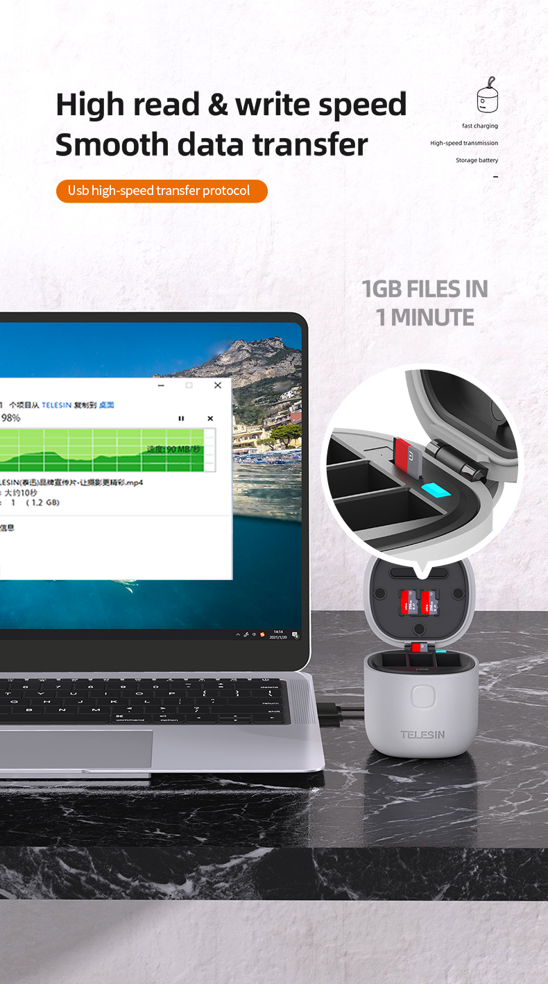 - Has high-speed TF card reader and writer, data transfer is fast, 1GB files transfer takes only a minute