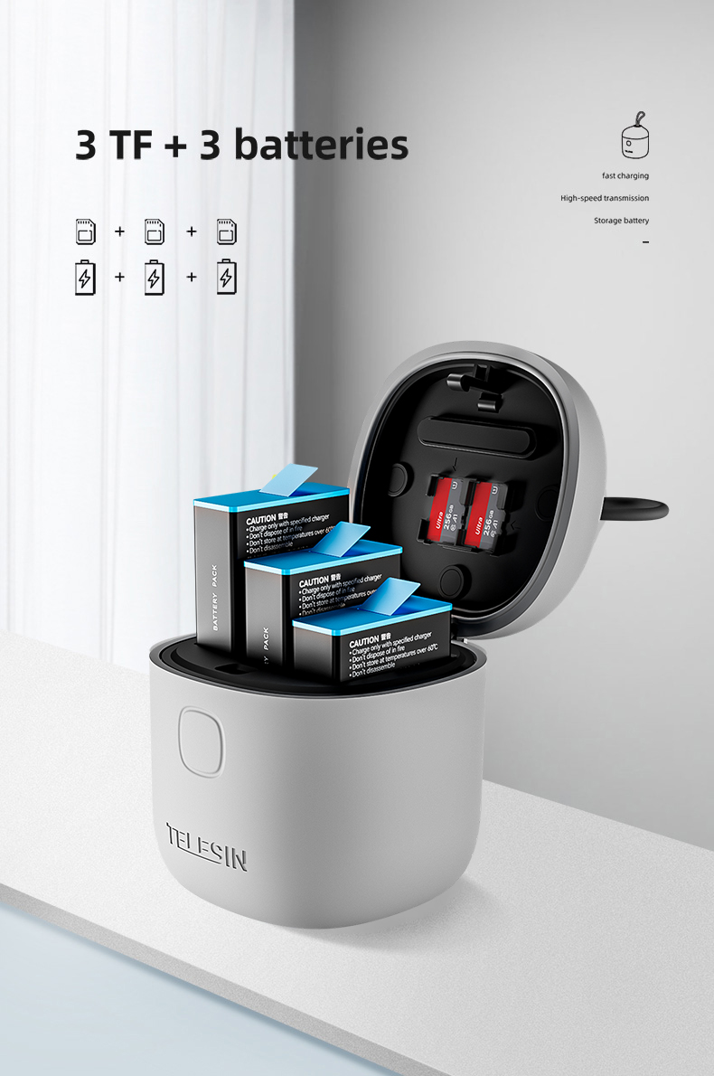 - As a storage box can hold 3 batteries and 3 TF cards