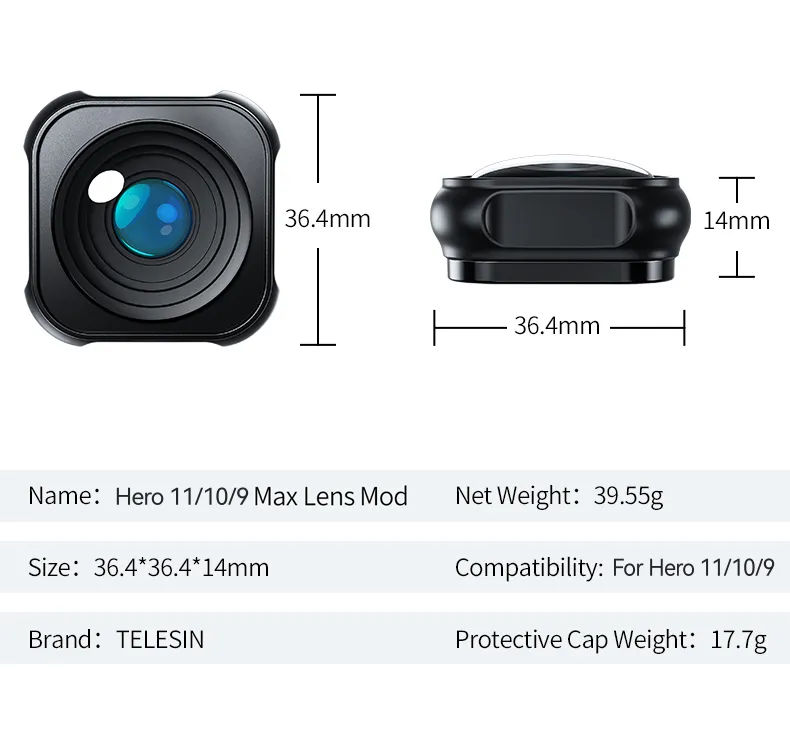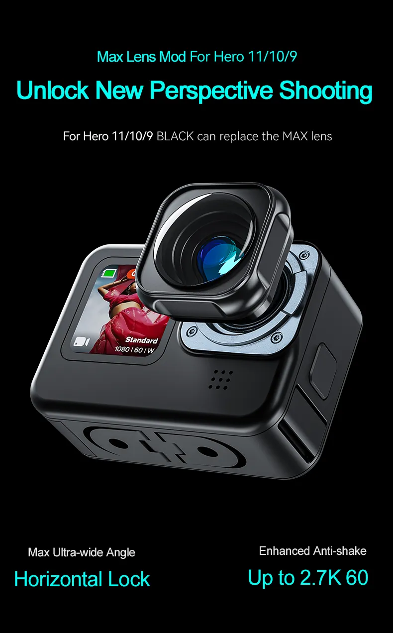 Upgrade your GoPro Hero 9, 10, 11 with the Ultra-wide 155° Max Lens Mod. Anti-shake, waterproof, and with protective covers, capture stunningly stable and wide shots on every adventure!