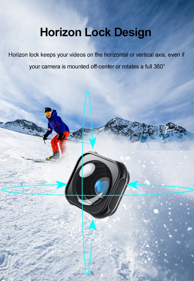 • Horizon Lock: Maintain a steady horizon even with off-center mounts or full 360° rotations.